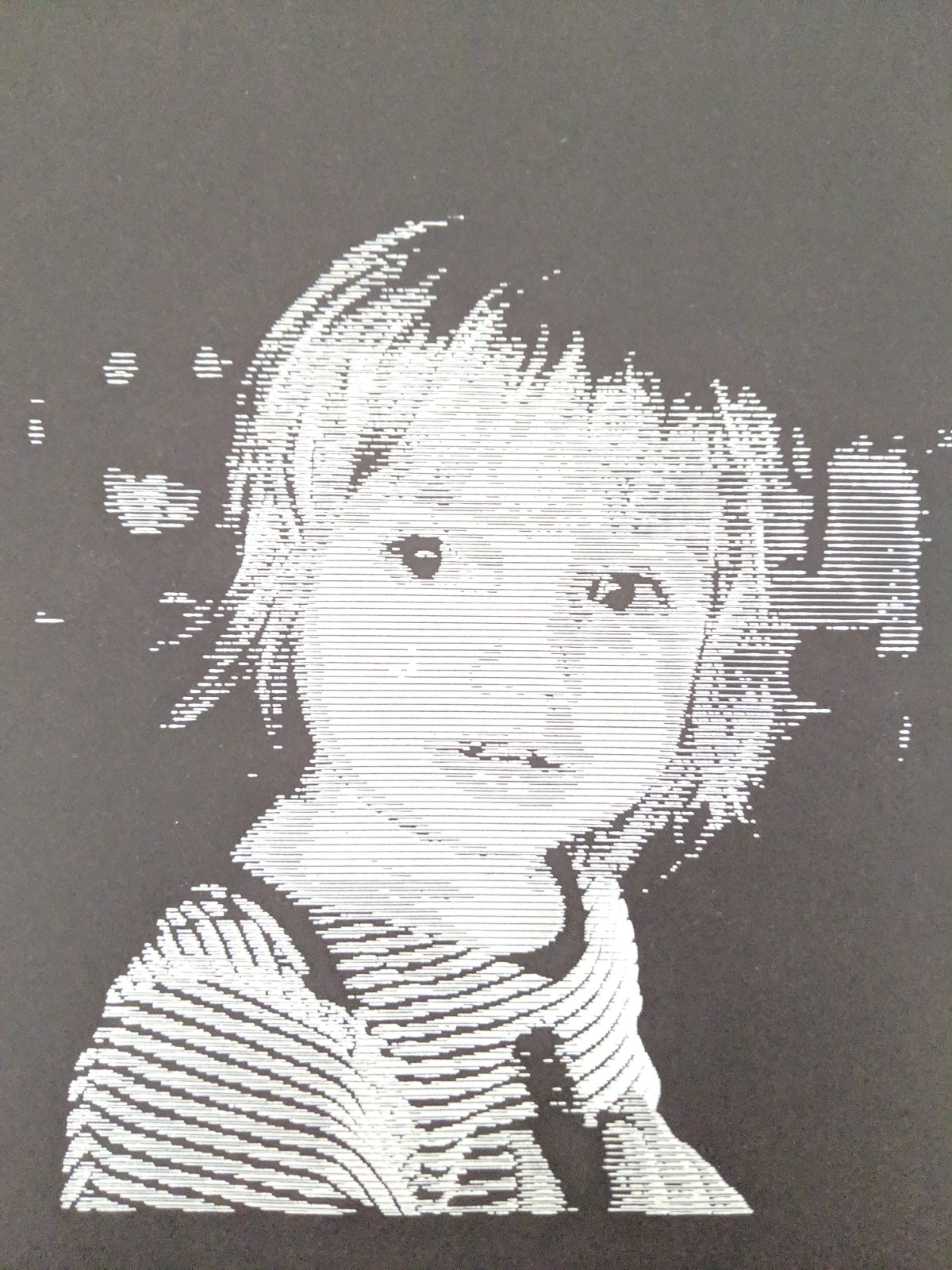 Extremely naive image to svg tool. RasterPlotter assumes input image is a monochromatic dithered image with black and white pixels only, the output will appear negative/inverted, this is so it can be plotted by a pen plotter. thresholdValue only defines the minimum line length so the pen plotter doesn't attempt to draw hundreds of lines of length 1. There's an additional -iso argument that instructs the SVG output to only draw every other line, eg. RasterPlotter.jar 10 -iso (displayed in the photo below). To use with DitherKt where jrun is an alias to a Java JDK: