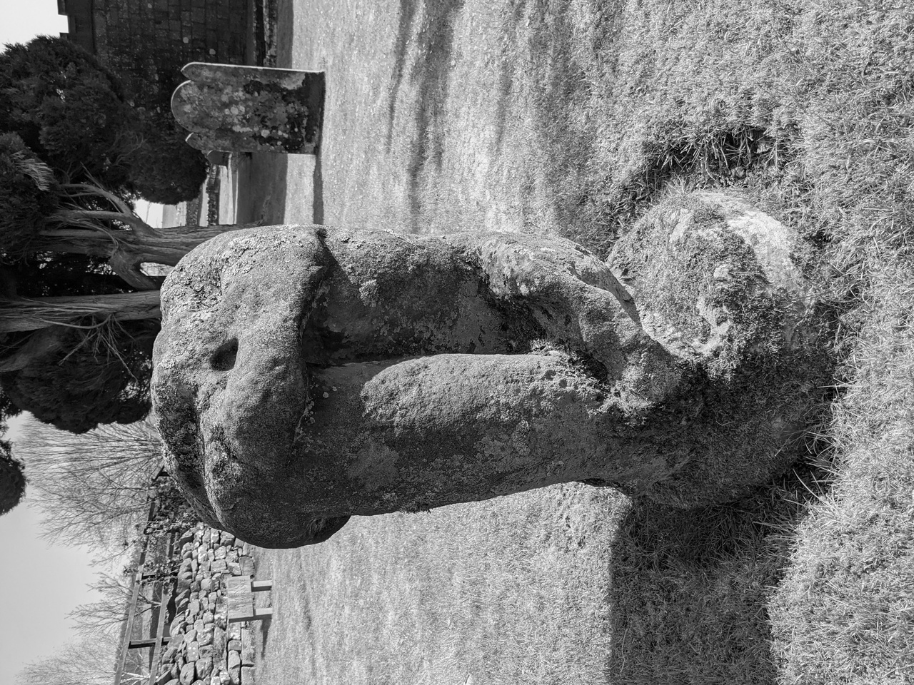 The Dacre Bears are four stone 'bears' in the churchyard at St. Andrew's Church, Dacre. Nobody knows when they're from but they pre-date Dacre itself which was first mentioned by Bede in AD731. They're probably not actually bears, I think that name comes from the fourth creature below which does resemble one from a cetain angle.