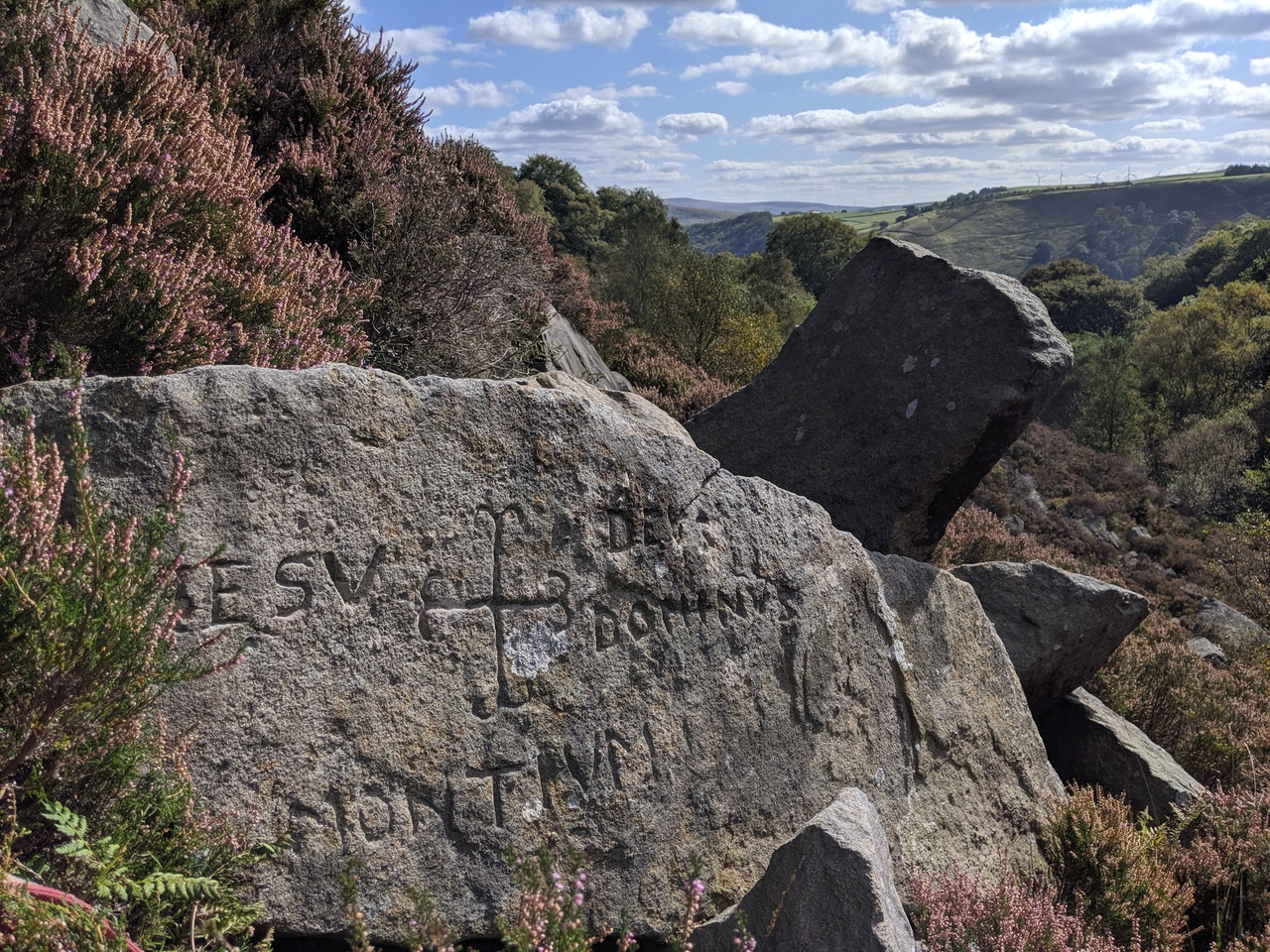 I approached from the west side of the clough, climbing down to the brook, jumped across then found my way up through the heather. To the south I spotted larger groups of rocks so headed that way to inspect, the Catholes Stone was amongst the first I came across (the coordinates above were taken on the spot and are precise, if you use them finding it should be relatively straightforward).